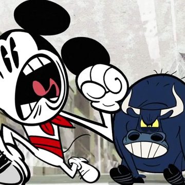 Mickey’s red-hot temper entices a bull to chase him down the streets of Pamplona, Spain